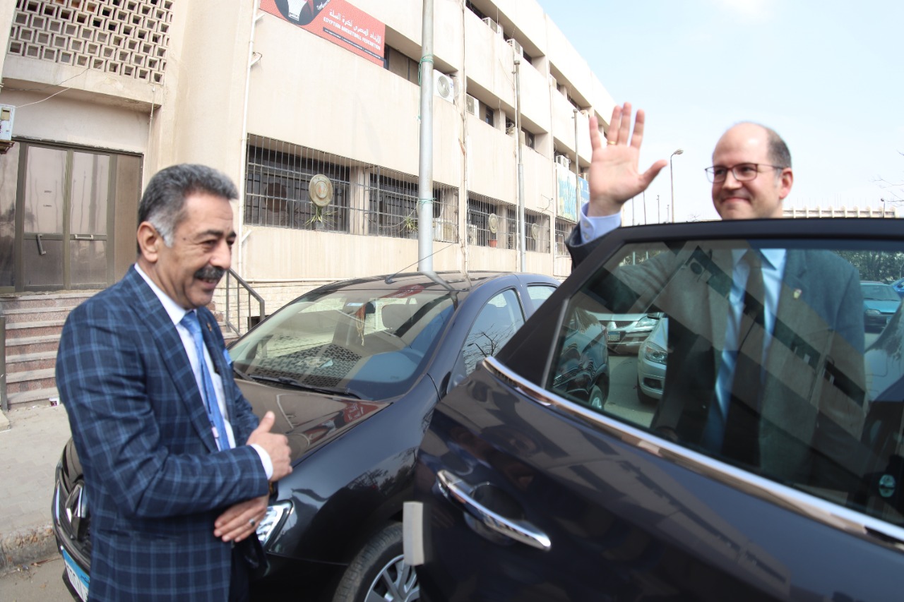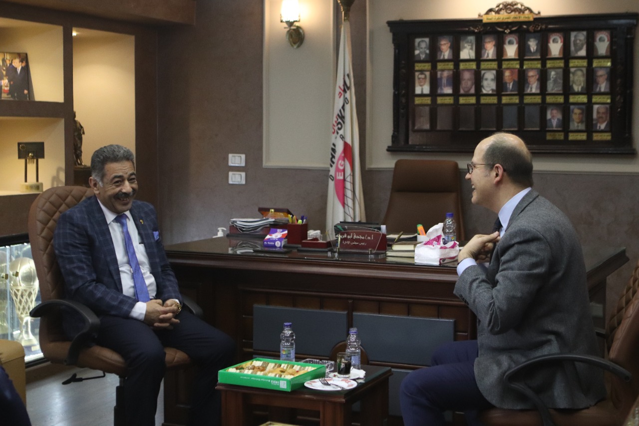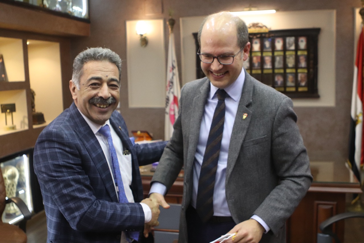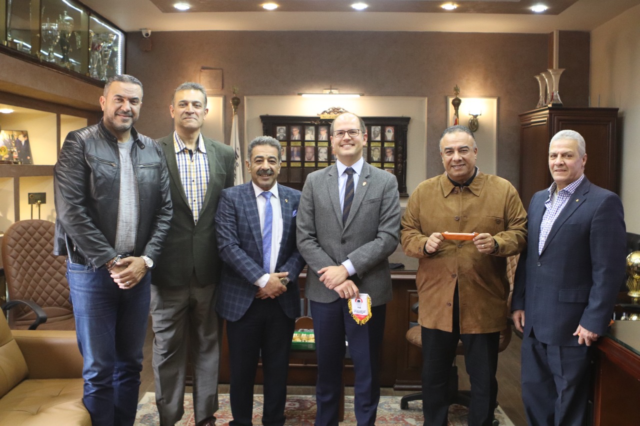 والتقى السكرتير العام للاتحاد الدولي بأعضاء مجلس إدارة الاتحاد المصري برئاسة الدكتور مجدي أبو فريخة الذي كان في استقباله رفقة أعضاء مجلس الإدارة.